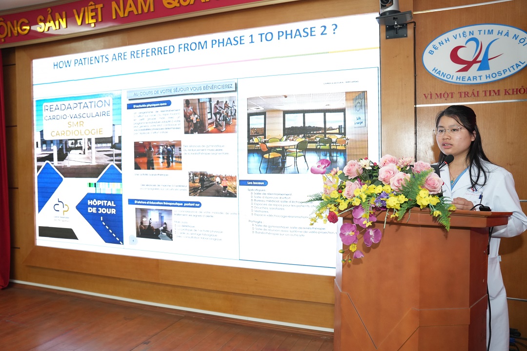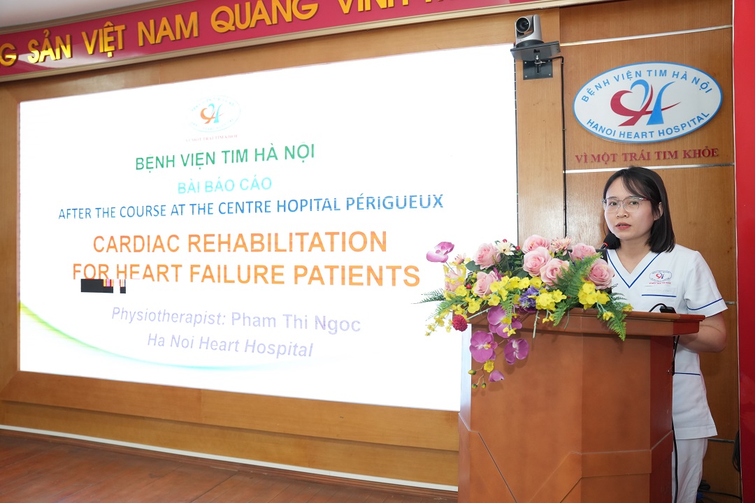 Tại buổi gặp gỡ, 01 bác sĩ và 02 kỹ thuật viên của Bệnh viện Tim Hà Nội – những học viên vừa hoàn thành 3 tháng thực tập tại Bệnh viện Périgueux – đã trình bày kết quả học tập về phục hồi chức năng tim mạch sau phẫu thuật.
