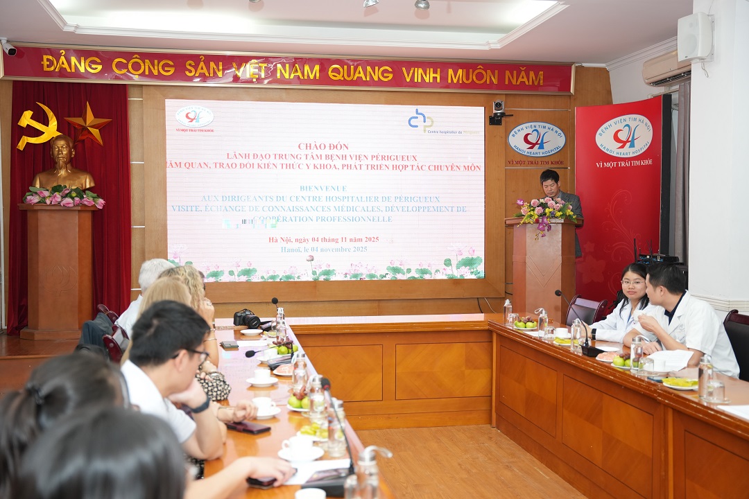 Chiều ngày 04/11, Bệnh viện Tim Hà Nội vinh dự đón tiếp đoàn lãnh đạo Bệnh viện Périgueux (Pháp) trong khuôn khổ chương trình hợp tác đào tạo và phát triển chuyên môn giữa hai bệnh viện.