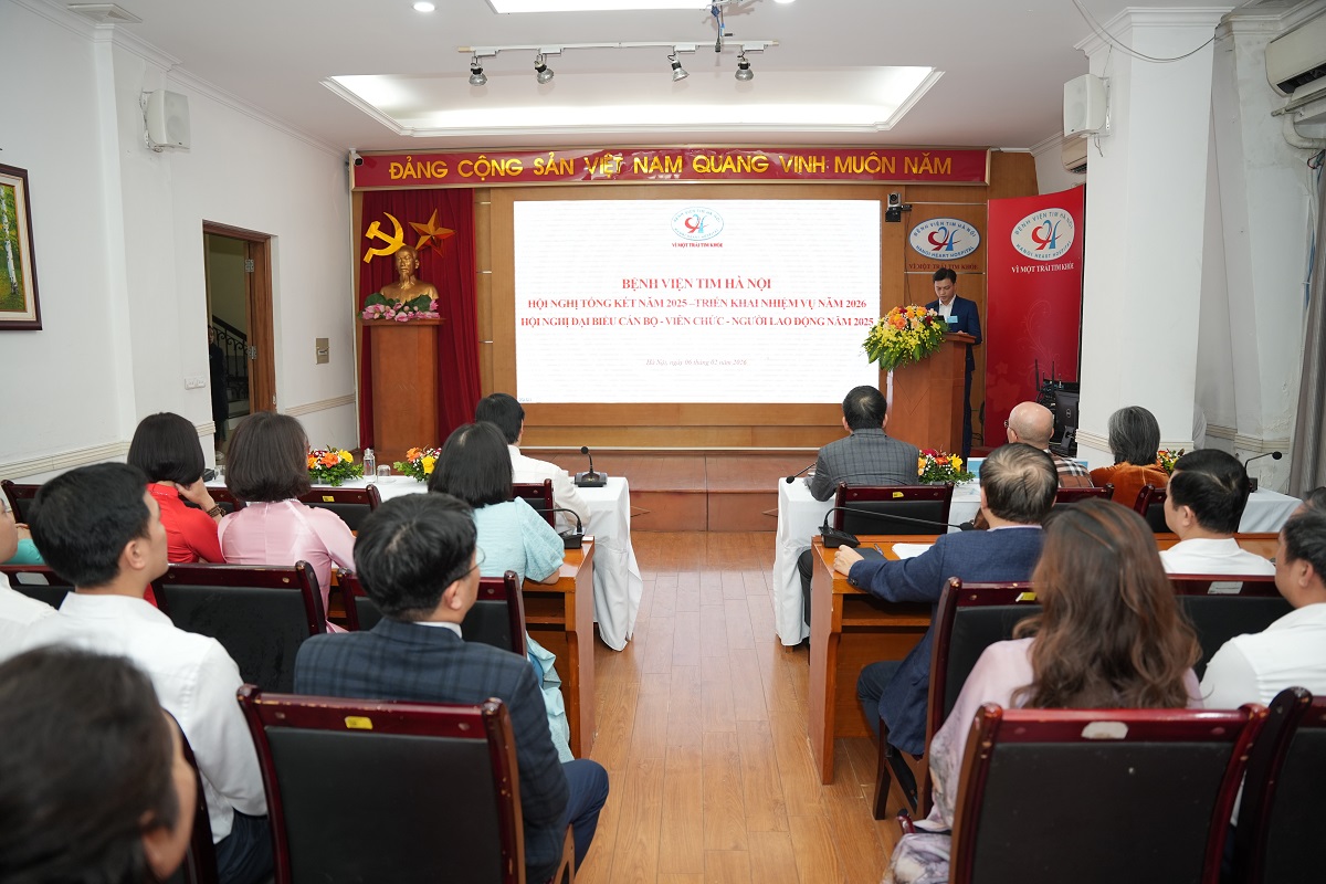 Ngày 06/02/2025, Bệnh viện Tim Hà Nội tổ chức Hội nghị đại biểu viên chức và người lao động năm 2025 nhằm tổng kết công tác năm 2025, đánh giá kết quả thực hiện các nhiệm vụ chính trị, chuyên môn; đồng thời đề ra phương hướng, giải pháp thực hiện hiệu quả các nhiệm vụ, kế hoạch của Bệnh viện trong năm 2026.