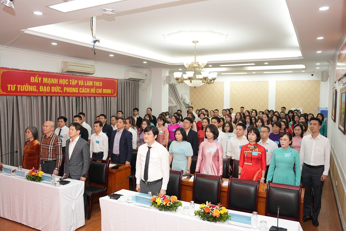TS.BS Nguyễn Trọng Diện – Giám đốc Sở Y tế Hà Nội cùng toàn Ban Giám đốc, Cán bộ công nhân viên chức Bệnh viện Tim Hà Nội làm lễ chào cờ tại Hội nghị cán bộ công nhân viên chức – người lao động năm 2025.